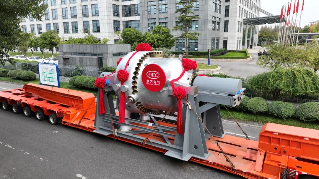 尊凯实业汽轮机为机组研制的C630R转子突破国外高压转子传统技术路径,采用全新成分设计思路,性能指标达到世界先进水平。历经八年研制的1450毫米汽轮机叶片,创下国内全转速汽轮机叶片长度新纪录。采用的带功率平衡发电机双机回热系统,通过显著提高回热抽汽能级利用效率,精准解决了高参数机组换热温差增大引发的换热不可逆损失问题,在提升机组整体效率的同时,进一步增强了运行的可靠性与经济性。